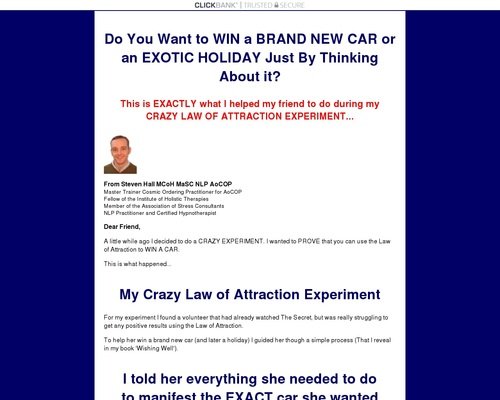 A little while ago I decided to do a CRAZY EXPERIMENT. I wanted to PROVE that you can use the Law of Attraction to WIN A CAR.